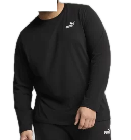 Puma ESS No. 1 Logo Longsleeve Tee uomo: maglia nera a maniche lunghe, vestibilità regolare e design minimal con logo iconico. Comfort e streetwear quotidiano.
