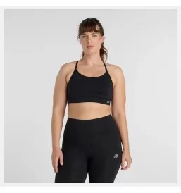 Reggiseno New Balance Essential Yoga Bra nero da donna, progettato per offrire supporto leggero, libertà di movimento e comfort durante yoga e attività a basso impatto.