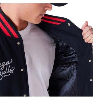 Giacca Varsity nera e rossa con patch NBA dei Chicago Bulls. Un classico intramontabile che unisce stile sportivo e dettagli ricercati.