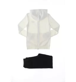 La Puma Tuta Bronze Fullzip Fleece è il completo perfetto per bambini che vogliono unire stile sportivo e comfort. Composta da una felpa bianca con cappuccio e pantaloni neri, questa tuta offre un look dinamico e casual. Il tessuto misto cotone-poliestere con una leggera percentuale di elastan garantisce massima libertà di movimento e morbidezza sulla pelle.