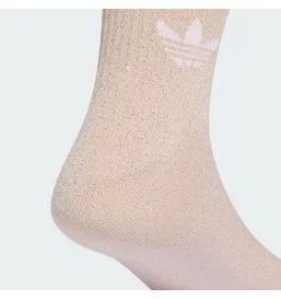 Calzini glitterati adidas a mezza gamba soffici, confezione da 2 paia, realizzati in 100% nylon. Design iconico con Trefoil, colori bianco e rosa, comfort e stile street autentico.