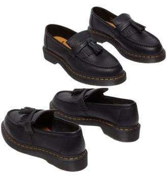 I mocassini Dr. Martens Adrian Nero , realizzati in pelle Ambassador, combinano l'estetica classica dei mocassini con la robustezza distintiva del marchio, arricchiti da eleganti nappe per uno stile sofisticato e grintoso.
