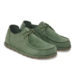 Il mocassino Birkenstock Utti Lace in pelle scamosciata unisce comfort anatomico e design urbano. Plantare estraibile Deep Blue, cuciture a vista e dettagli unici.