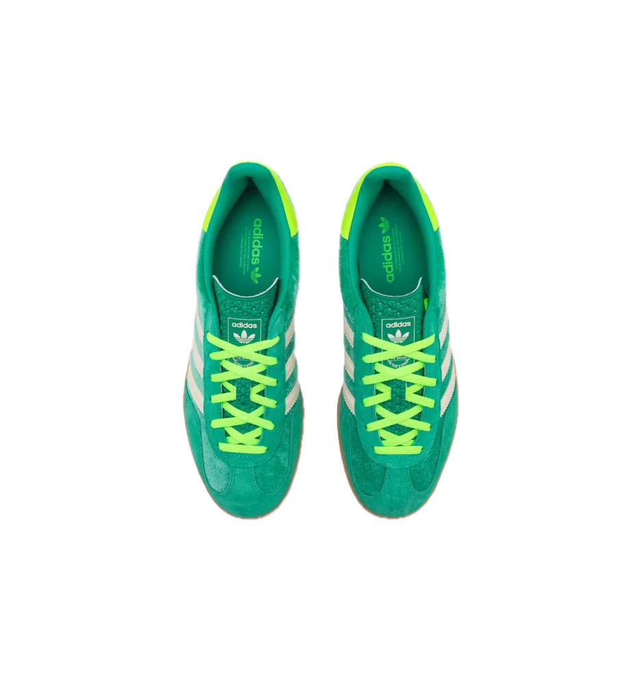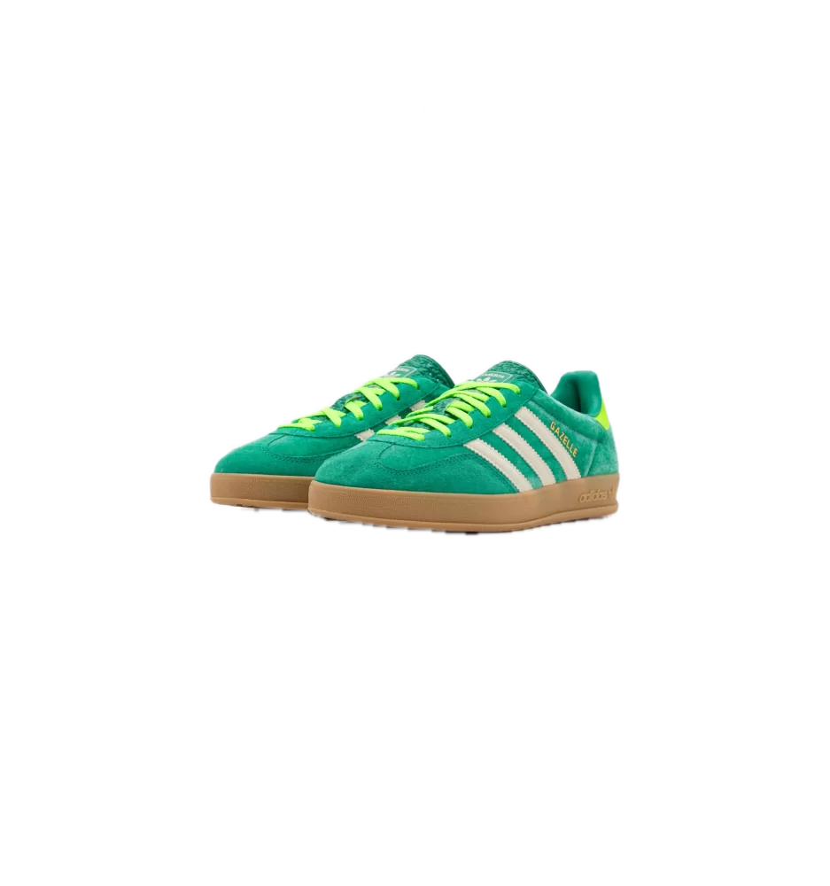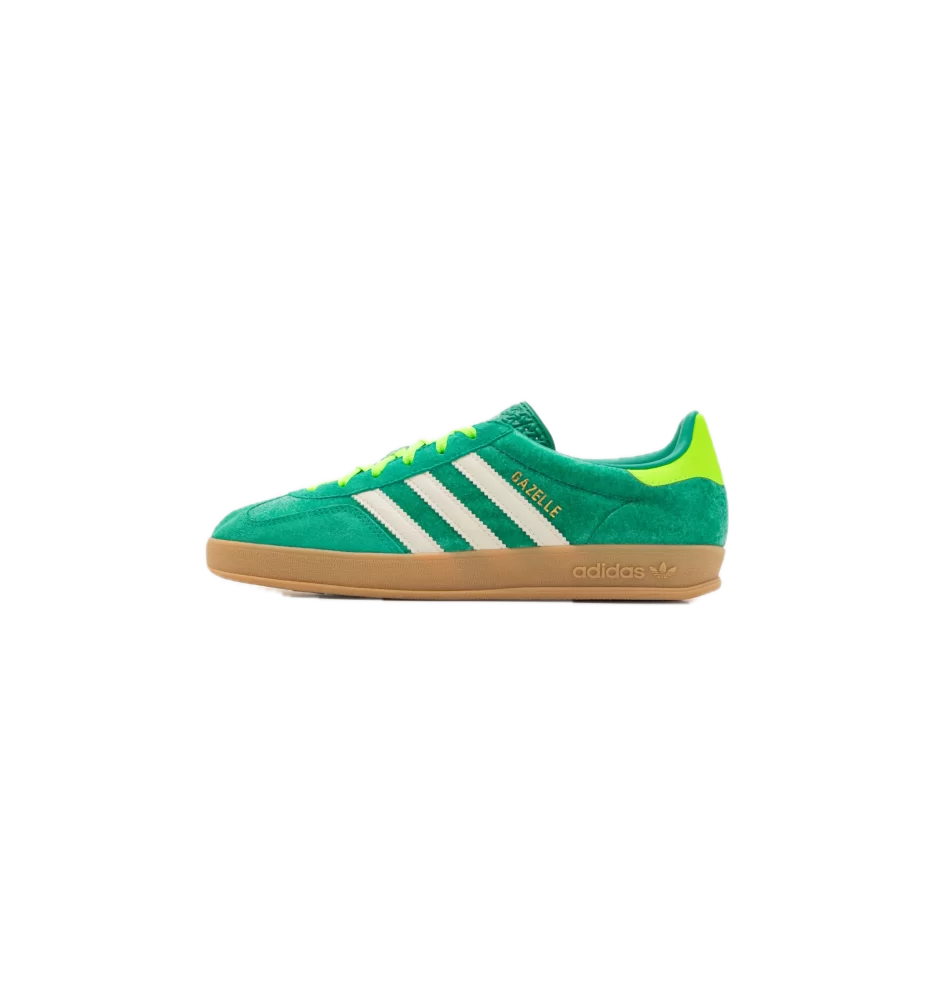 Le Adidas scarpe Gazelle Indoor Verde E Bianco sono una celebrazione dell'iconico design rétro, reinterpretato con materiali moderni e dettagli esclusivi. La combinazione di pelle e materiali sintetici nella parte superiore offre resistenza e comfort, mentre il rivestimento interno in tessuto garantisce una calzata confortevole anche durante un uso prolungato.