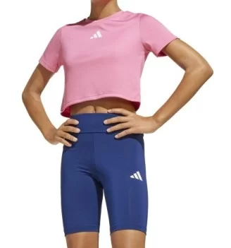 La tuta Adidas Train Essentials per ragazze, composta da t-shirt crop rosa e leggings corti blu, è perfetta per chi ama lo stile sportivo con un tocco trendy. La maglietta corta offre un fit comodo e leggero, mentre i leggings sopra il ginocchio garantiscono una vestibilità aderente e flessibile. Realizzata con tessuti morbidi e traspiranti, questa tuta è l'ideale per lo sport, il tempo libero o per un look casual dinamico.