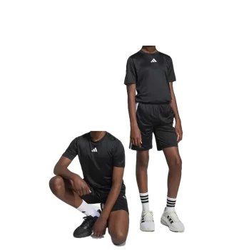 Tuta adidas Train Essentials 3-Stripes Nero Ragazzi Unisex: comfort e prestazioni in un solo look. T-shirt e pantaloncini con tecnologia CLIMACOOL, tessuto traspirante e quick-dry.
